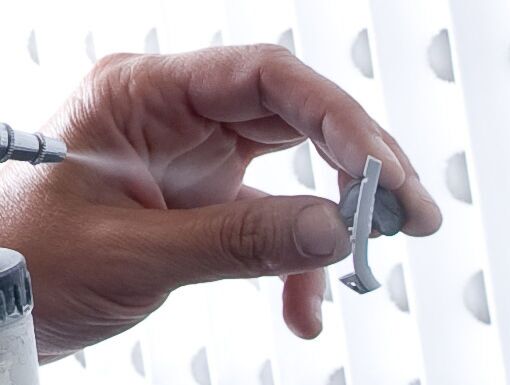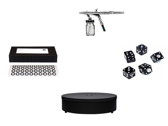 En airbrush bruges til at påføre et tyndt lag titaniumdioxid på emnets overflade før scanning. Det anbefales at bruge en high performance airbrush til små eller meget detaljerede emner.